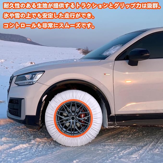 【冬場の非常時の備えに】急な降雪への備えに最適なタイヤ スノー ソックスです。他チェーンに比べて走行時の振動・走行音も少ない。