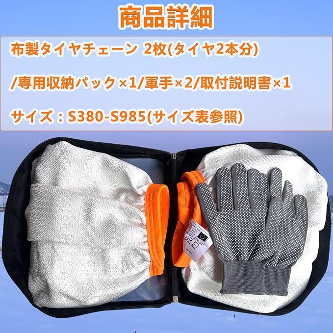 RYYOCT1ST タイヤチェーン 布製 非金属 スノーソックス 軽自動車 布チェーン 駆動輪 2本分 チェーン規制対応 軽量 コンパクト 装着簡単 布製タイヤすべり止め 冬場 雪道 緊急用 175/80R16 205/65R16 215/65R16 6.50R16 215/60R17 215/50R18 225/50R18 245/45R18 275/35R19 適合 S785