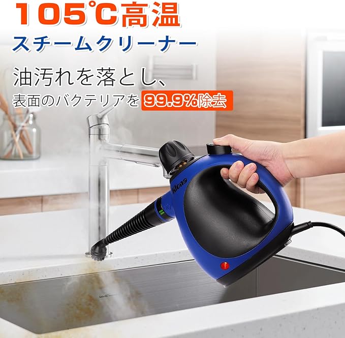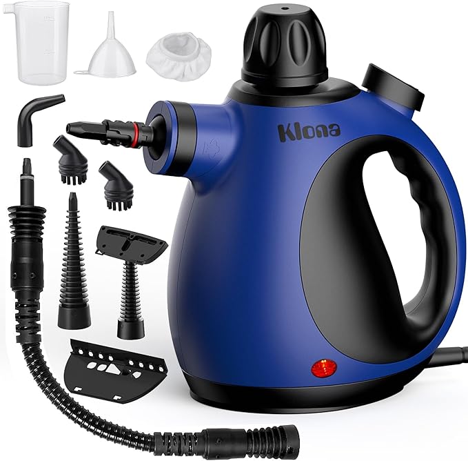 Klona スチームクリーナー、スチームクリーナー ハンディ、10ピースのアクセサリーセットを備えた、加圧スチーム洗浄機多目的および多面すべての自然で化学薬品を使用しない家庭、キッチン、自動車、用スチームクリーニング、カーペット 除菌 掃除 年末清掃