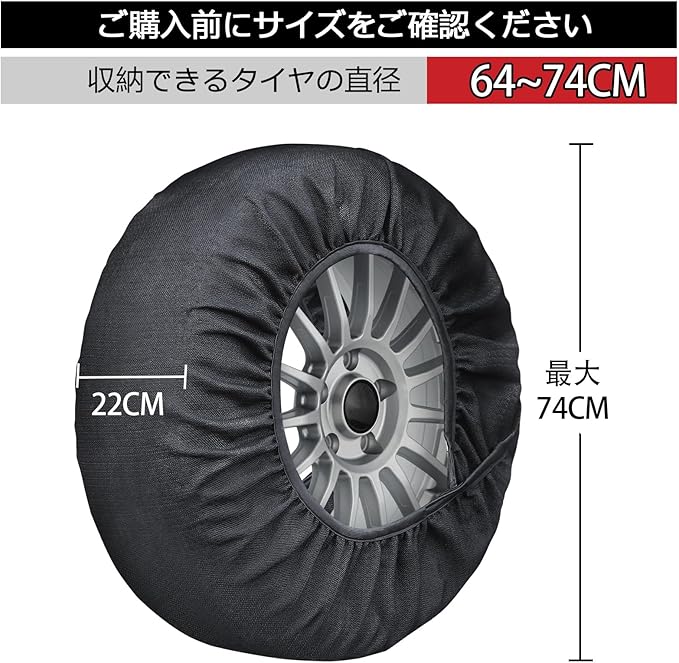 【サイズ展開】こちらの商品はタイヤ2本分、S(タイヤの直径55~65cm対応)、M(タイヤの直径64~74cm対応)とL(直径73~81cm対応)2サイズ展開指定ます。サイズを確認してから、ご購入をオススメいたします
