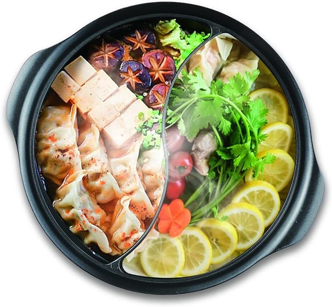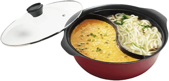 卓上鍋 仕切り鍋 約28cm 3-5人用 両手鍋 2食鍋 ガス火 IH対応 ガラス蓋付 軽量タイプ フッ素加工 異なる味でも一緒に煮込める 鍋料理 火鍋 しゃぶしゃぶ 湯豆腐 おでん うどん ラーメン などに
