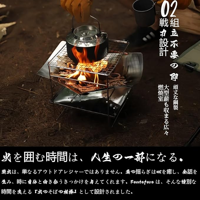 【高耐久設計&1年間保証】高品質のステンレス鋼を採用し、優れた耐久性と変形しにくい特性を備えています。頑丈で長期間使用可能です。このストーブはステンレス製のため完全に洗浄でき、錆の心配がありません。タキビダイ製造不良時は無償修理・交換対応,年間を通じて24時間以内の迅速な対応。