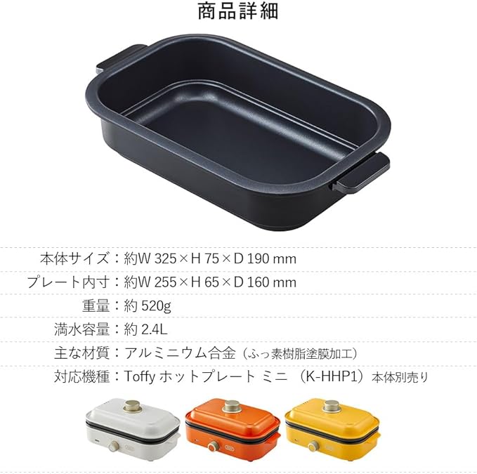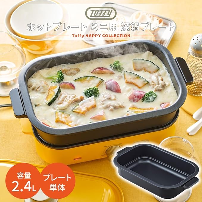【Toffy/トフィー】 ホットプレート ミニ K-HHP1 コンパクト 1~2人用 フタ付き 蒸し料理 別売プレート たこ焼き 深鍋 普段使い ホームパーティー カラーバリエーション豊富 [別売]専用深鍋プレート