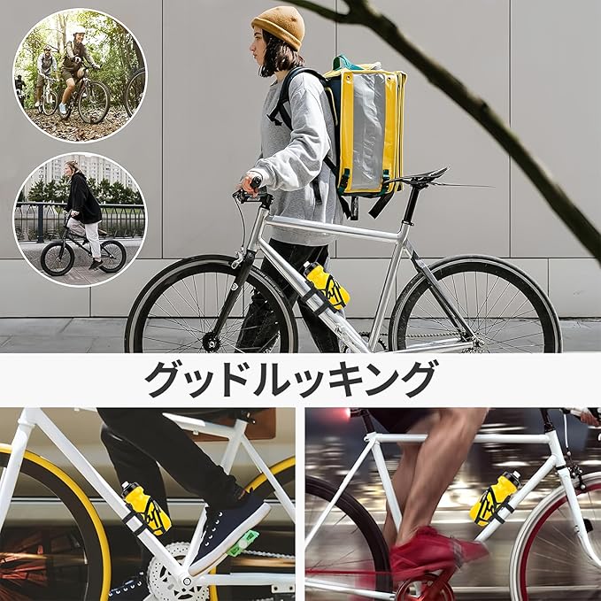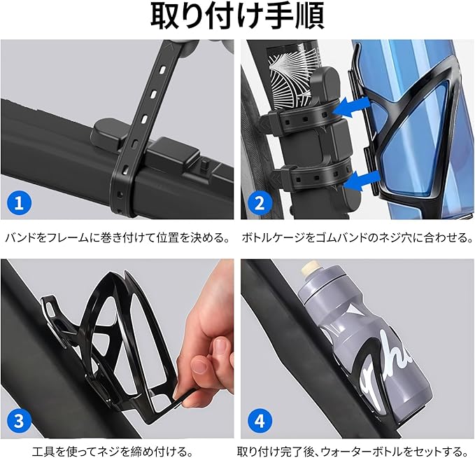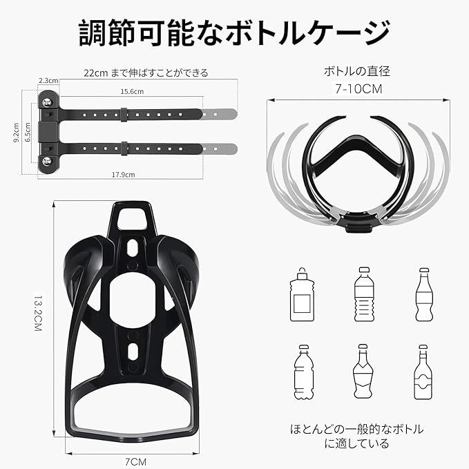 ボトルケージ&アダプターセット 自転車用ボトルケージ 軽量 ロードバイク/クロスバイク対応 穴あけ不要 シリコン滑り止めマウント ペットボトル 取り付け工具付き(ブラック)