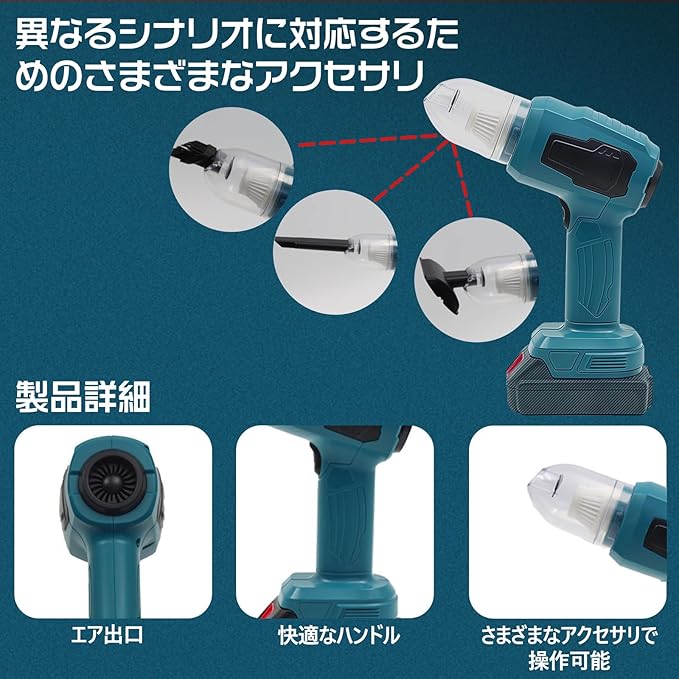 特徴 【4-IN-1 吹き飛ぶ/吸い込む/空気入れ/空気抜き】, 【コードレス】, 【マキタ 互換品】, 【强力ブラシレスモーター 200W 21,000pa 30.91CFM】, 【軽量300g コンパクト】【4-IN-1 吹き飛ぶ/吸い込む/空気入れ/空気抜き】, 【コードレス】, 【マキタ 互換品… 表示を増やす