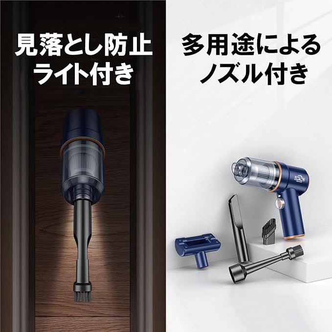 【新登場】ハンディクリーナー 多機能 車用掃除機 ミニ掃除機 強力吸引力 コードレス カークリーナー Type-C 充電式 小型 低噪音 LEDライト 【吹き飛ぶ/吸い込む/空気入れ/空気抜き】車載ミニポータブルコードレス掃除機 軽量 家庭用 キーボード掃除 車内清掃 日本語説明書 (ブルー) 多種類ノズル付き フィルター水洗可