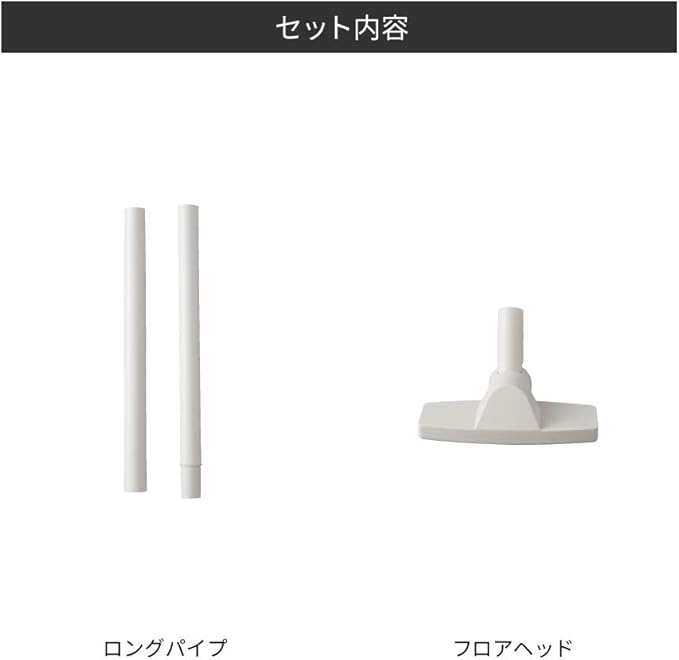 コードレス&スリムでどこでも手軽に使える充電式掃除機[コードレス スティック クリーナー]の別売りアタッチメントパーツ。 ◆床掃除がラクに [コードレス スティック クリーナー専用フロアパーツ]は、ロングパイプ(延長パイプ)とフロアヘッドがセットになっており、取り付ければハンディタイプの本体が、フローリングやじゅうたんなどの足元を掃除しやすいステイックタイプの掃除機に早変り! ◆低い家具の隙間の掃除などもOK 本体が直径約5.8㎝とスリムで出っ張りのないデザインなので、フロアパーツを取り付けても低い家具下の隙間などにひっかかりにくく、奥の方までスムーズにお掃除できます。 ◆軽い!片手でお掃除 フロアヘッドだけを直接本体に取り付けることも可能。ヘッドが回り角度が調節できるので、ソファーやファブリックなどのお掃除にもぴったりです。 ◆軽い! 本体に取り付けても約0.5Kgと軽いので、片手でラクラクお掃除OK。組み立ても簡単です。