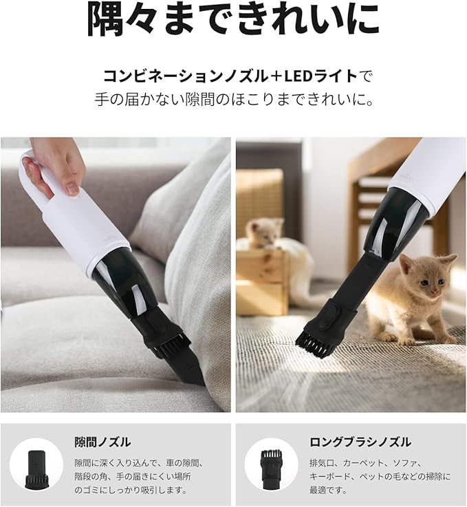 ハンディクリーナー Cleanin Nook 【コードレス/充電式/軽量設計/強力吸引/コンパクトサイズ/コンビネーションノズル付属】 ホワイト