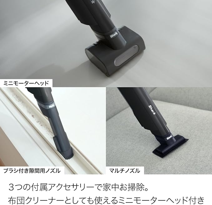 豊富なアクセサリーにより家を丸ごとお掃除/使い勝手にこだわったブラシ付き隙間用ノズルやミニモーターヘッドなどのアクセサリーがワンタッチ操作にも対応し、家を丸ごとお掃除