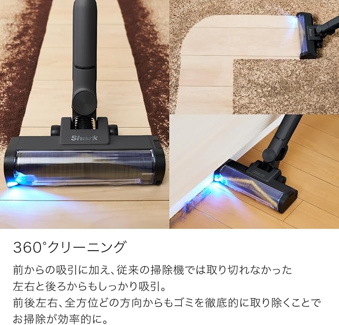 360 クリーニングでお掃除時間を短縮/前後左右からゴミを吸い取るシャーク独自の360 クリーニングで従来よりもお掃除時間を短縮