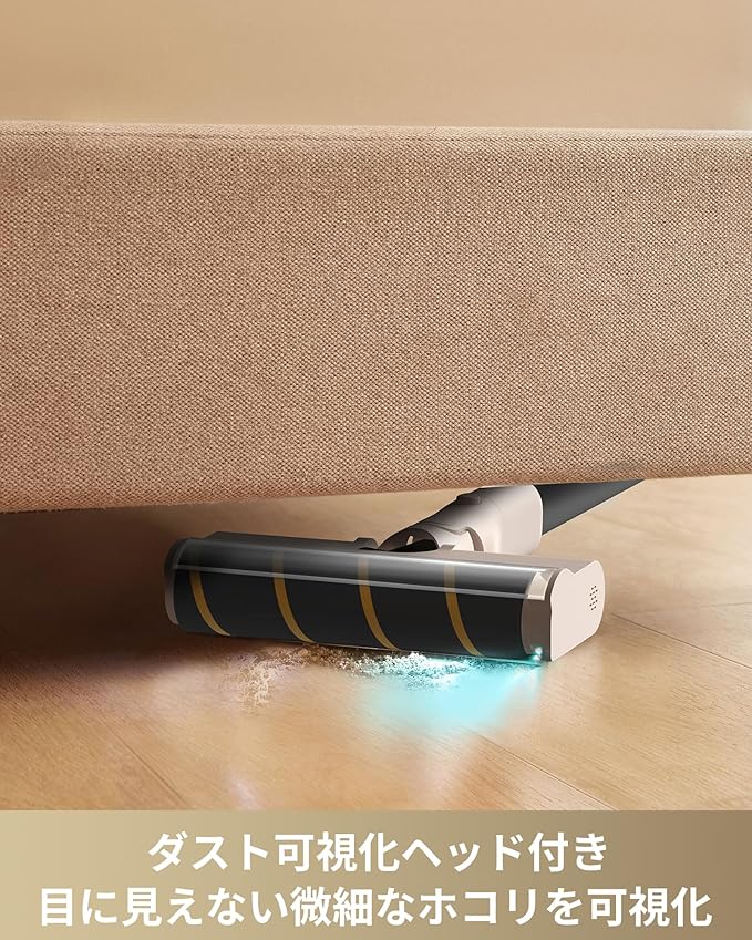 【クリーナーヘッド付き】目に見えないホコリや微細なゴミをMOVAデザインしたLEDライトで浮き上がらせ、隅々までしっかり吸引。