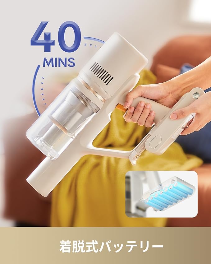 【長時間使用可能】MOVA S1は1回の充電で最大40分稼働可能。日常的な掃除から広範囲の清掃まで、安心して使用できます。