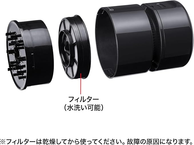 ●中のフィルターの部分は水洗い可能です。