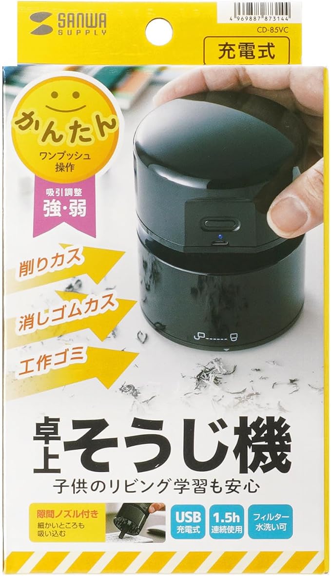 サンワサプライ ハンディバキュームクリーナー USB充電式 隙間ノズル付き 卓上掃除 CD-85VC