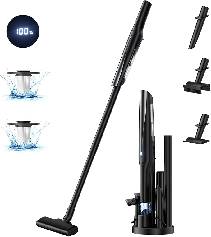 掃除機 コードレス【収納に充電スタンド付き】ハンディ掃除機 最大40分連続稼働 0.5kg超軽量 2way仕様 28000pa強力吸引 スティッククリーナー USB Type-C充電式 LED液晶ディスプレイ 電量可視化 多層濾過 一人暮らし 年末お掃除 車用/家庭用(黒)