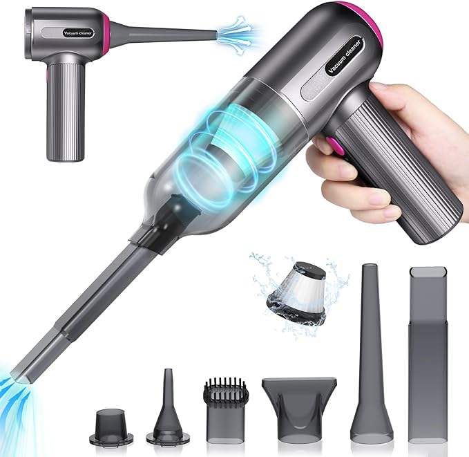 ハンディクリーナー 【2in1 吹き出し&吸い込む 】車用掃除機 コードレス ハンディ掃除機 リーナー 強力吸引 大容量バッテリー 車用 カークリーナー Type-C USB充電式 小型掃除機 人気 LED照 車載ミニポータブル キーボード掃除 車内清掃 家庭用 6種類のノズル付き 軽量 コンパクト (グレー)