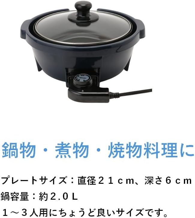 丸山技研 プチ・プレジール 電気 グリルパン 21cm ネイビー PGN-70 (N) 電気鍋 グリル鍋