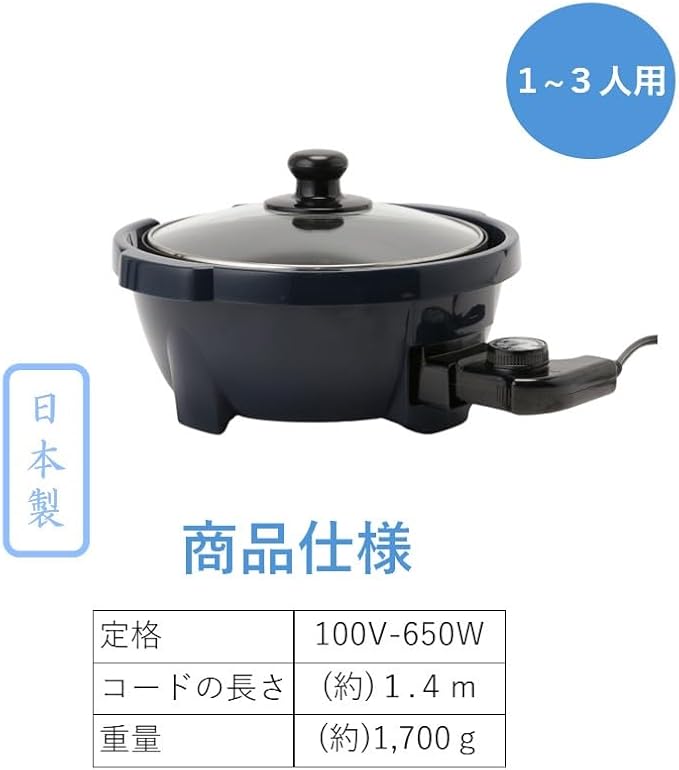 電源:AC100V、消費電力:650W(50/60Hz)、コードの長さ:約1.4m