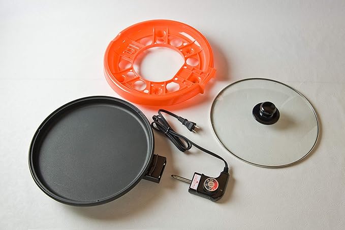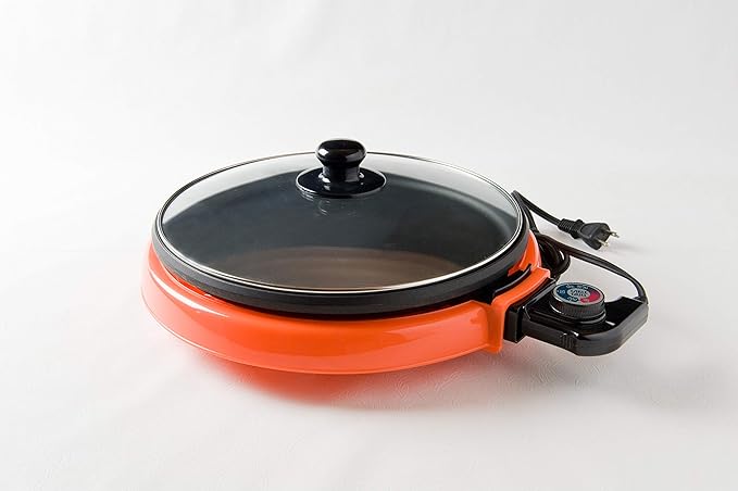丸山技研 電気 ホットプレート 28cm ガラス蓋 丸形 1200W ダイヤル温調式 オレンジ AZ-3915