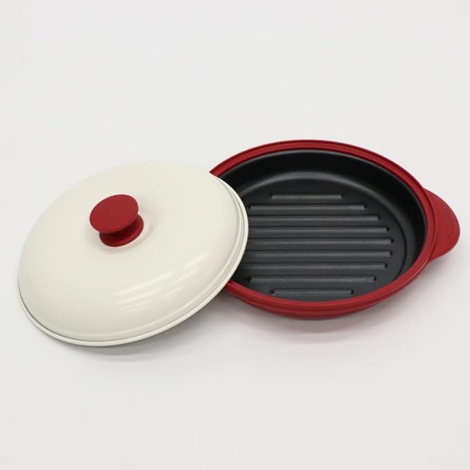 材質 ■素材・成分:本体:アルミメッキ鋼材, 内外部:高温耐熱塗装+内部底:グリルリブ付きとノンスティックコーティング, 外底部:アルミメッキ鋼材, 本体ノブ:耐高温シリコン