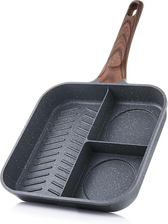 SENSARTE 仕切り付きフライパン マーブルコート 24cm IH ガス グリルパン 3分割 角型フライパン くっつきにくい 一年保証 グレー