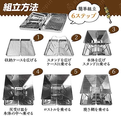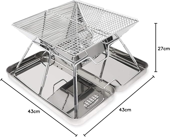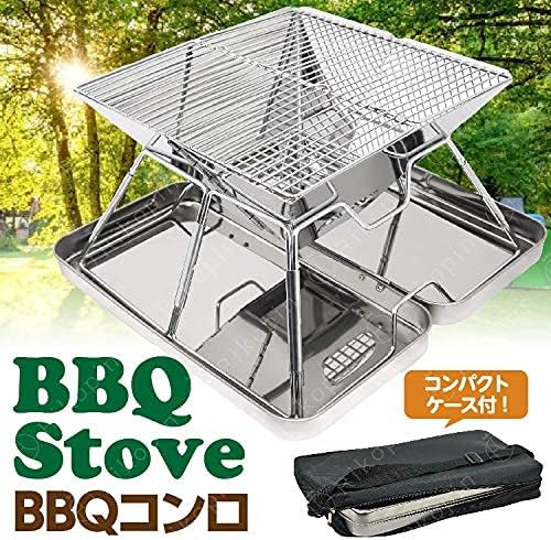 Rikopin(リコピン) 大型 焚き火台 バーベキュー コンロ 収納ケース付 コンパクト グリル 折りたたみ BBQコンロ 2-4人用 ステンレス 軽量 サイズ:43 43 27cm (大型サイズ)