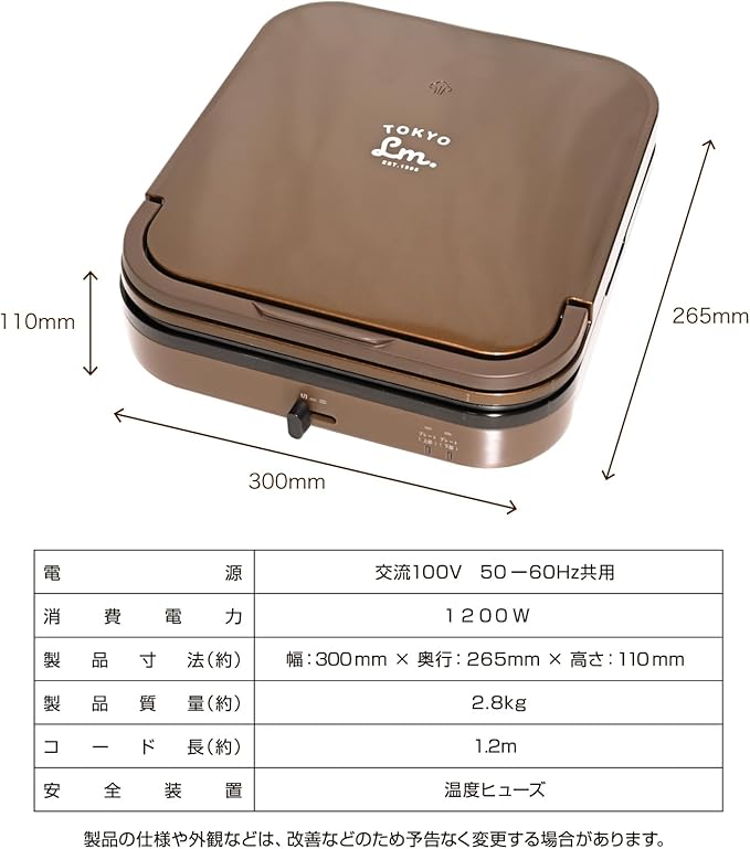 電源:AC100V (50Hz/60Hz) ・消費電力:1200W