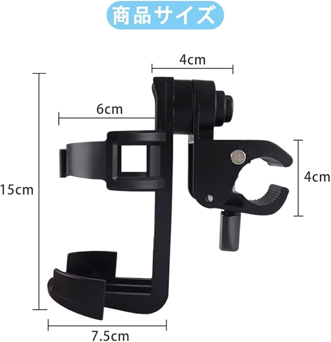 【取付簡単】取付はとても簡単で、面倒な工具などは一切使わず、取付は片手でネジを締めるだけ、取り付け径を調整できます、クリップ式ボトルホルダーで車を傷つけません。