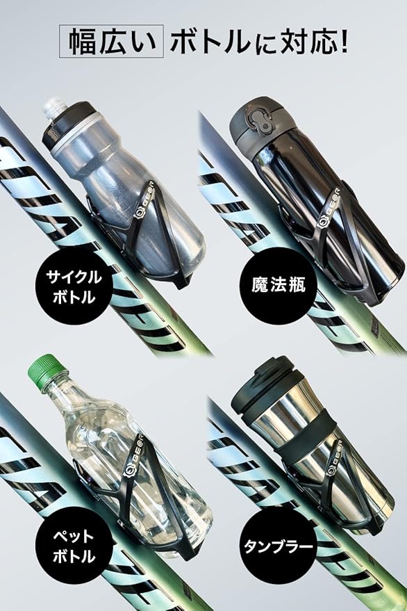 ✅【多機能】ギアトルの自転車用ドリンクホルダーは、直径8cm前後のボトルに対応する優れたボトルケージです。このボトルホルダーは、サイクルボトルやツールボトル、ペットボトル、水筒、ウィンドブレーカー、輪行バッグなど、多様な用品を装着できる多機能アクセサリーです。ロードバイクやクロスバイクのフレームに取り付けて、サイクリング中に保冷ボトルや飲み物ホルダーとして活用できます。