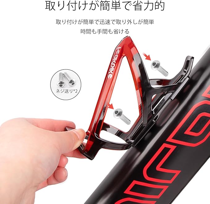 【取り付け簡単】ダウンチューブ、シートチューブ等、自転車フレームに設置された一般的なボトルケージの台座に、ボルトで簡単に取り付け可能です、自転車を傷つけることはありません。メモ:ネジが2本付属しています。