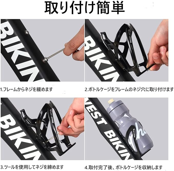【取り付け簡単】自転車のハンドルバー、フレーム、シートポストなど好きな場所に取り付けることができて、傷を付けません。ネジと六角レンチなど必要な取り付け金具を含め、ボトルケージの台座に簡単に取り付け可能です。しっかりと固定するためにワッシャーをお勧めします。