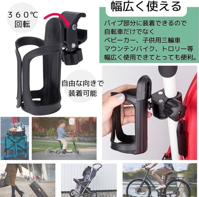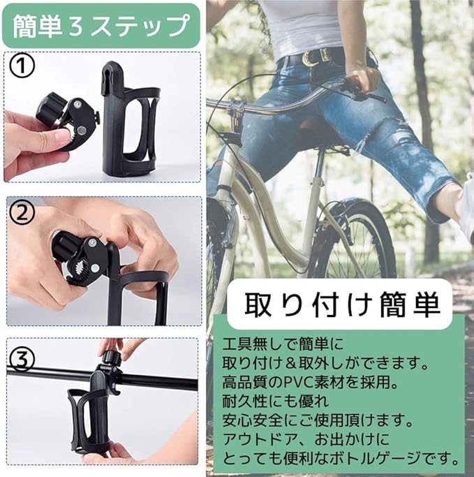 East Leaf ドリンクホルダー 自転車 ハンドル ボトルホルダー ペットボトル 工具不要 2個 セット 黒 ベビーカーにも
