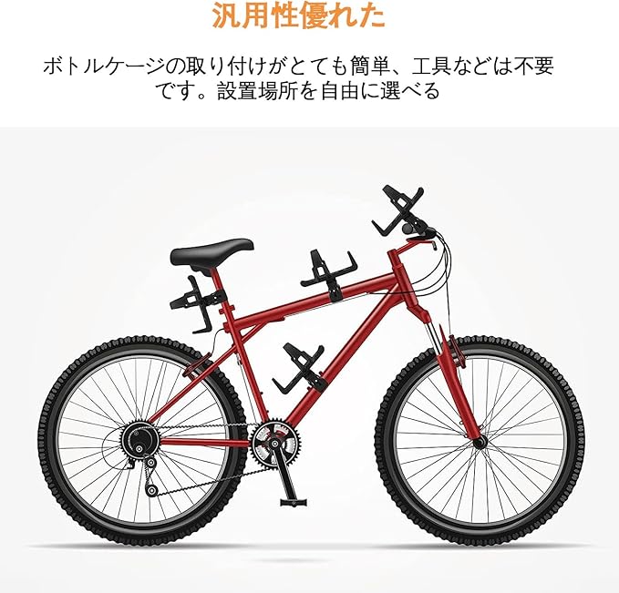 【取り付けが簡単】:サイクルボトルケージの取り付けがとても簡単、工具などは不要です。自転車のフレーム、ハンドルバー、シートポストなどを好きな場所に取り付けることができます。