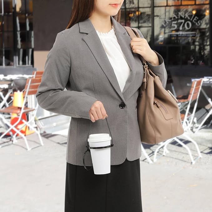 【持ち運びを楽にする】ドリンクカップを手提げ感覚で持ち運べます。ドリンクカップが手を占有してしまうことから解放されます。またカップが熱い、冷たいを気にせず持ち歩けます。