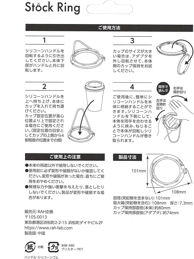 ドリンクカップホルダー Stock Ring ストックリング RAH-1011-PK (ピンク)