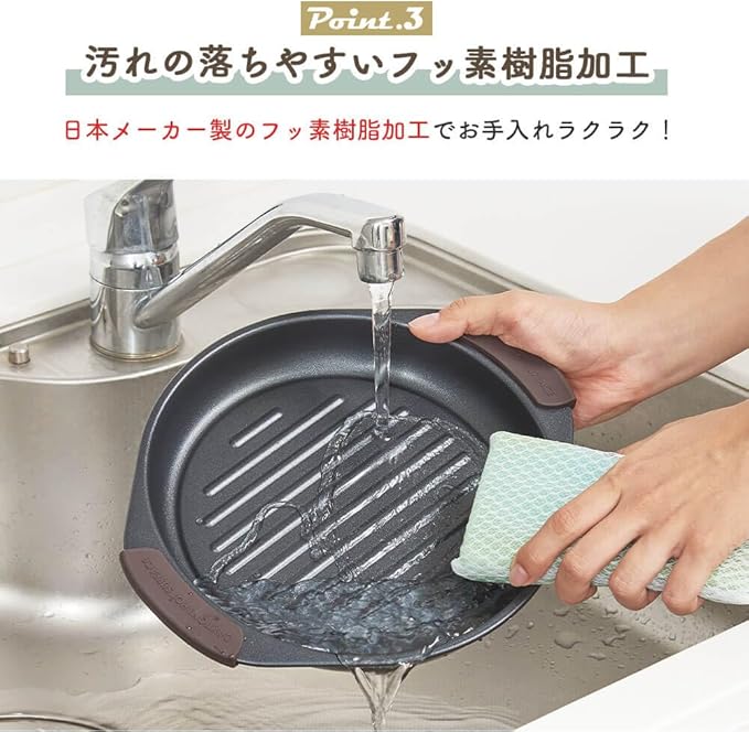 【お手入れカンタン!】 プレートはふっ素樹脂(日本メーカー製)加工で焦げ付きにくく、サッと水洗いできます。