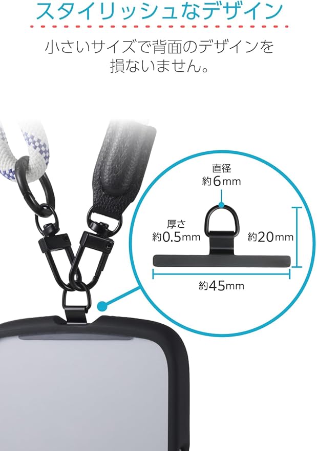 ■お使いのスマホケースにストラップホールがなくても、ケースのケーブル穴に通すだけで使用できます。