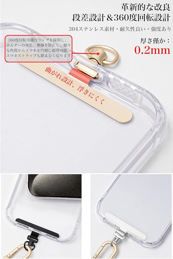【革新版、360 回転仕様】:この新発売ストラップホルダーは創造的に360 旋回可能な金属軸採用で捻れによるストラップホルダーの劣化、摩耗を防止します。さらに、360 回転設計により、様々な角度からスマホを円滑に使用可能、スマホストラップも結び付きにくい、使用便利さを非常ににアップさせます。