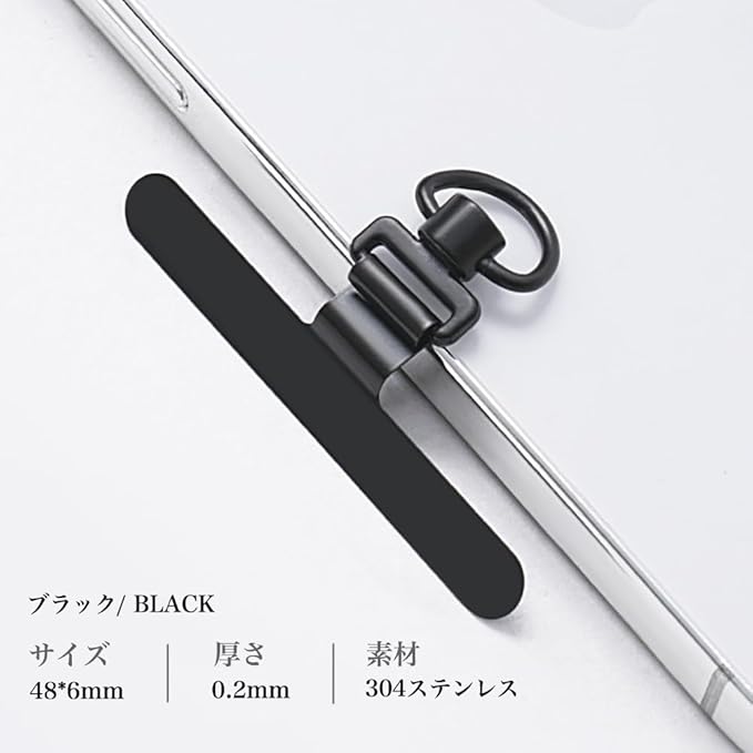 【革新版 極薄0.2mm・360度・304ステンレス製】 ALUBES ストラップホルダー 薄型 ストラッパー ステンレス スマホストラップ ホルダー 全機種対応 スマホショルダー 耐久性 破損・劣等化なし 軽量 薄型 荷重量10㎏ ブラック