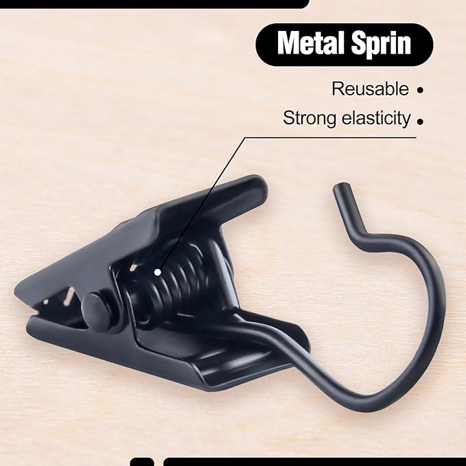 50個セット カーテンフック クリップ 黒 吊り下げ用S字フック 取付簡単 メタルフッククリップ ライトクリップ ヘビーデューティーフック 強力クリップ カーテンライナー シャワーカーテン お好み生地を挟む 自分だけのオリジナルカーテン カーテンリングクリップ