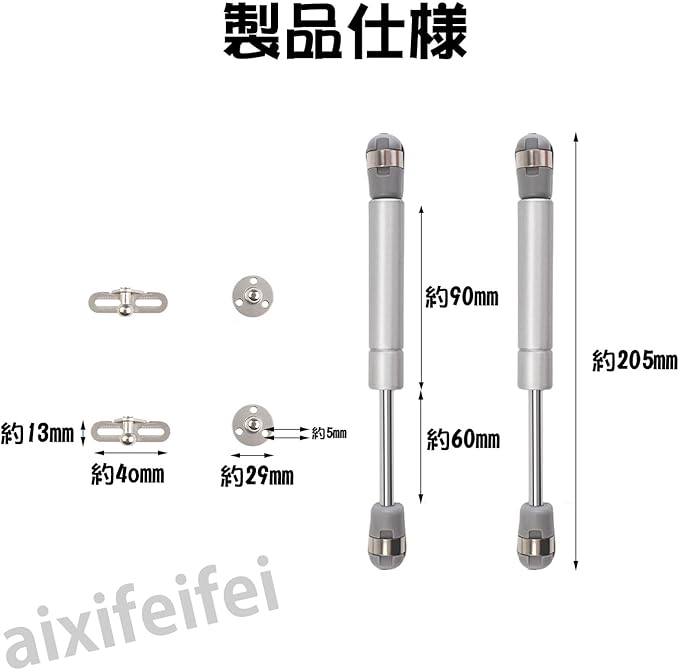 【商品規格】: 油圧サポートロッドは約21 3cm、重約100g。梱包内容:ガスリフト*2本、ネジ*10個。フォース:100N /10kg。最大開閉角度:100度。