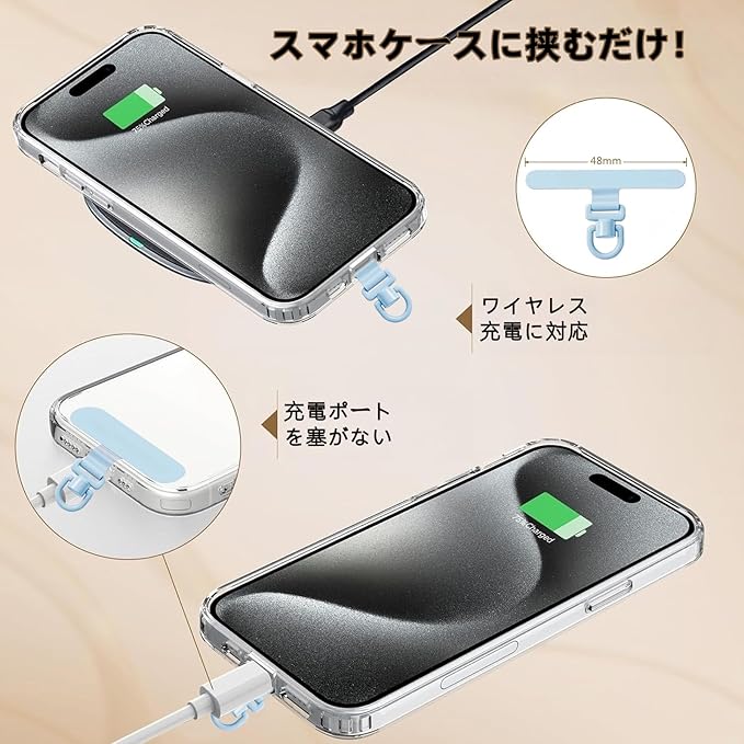 ✅【瞬時取り付け】スマホケースに挟むだけの簡単操作で取り付け完了。充電ケーブル接続やワイヤレス充電にも一切影響を与えません。