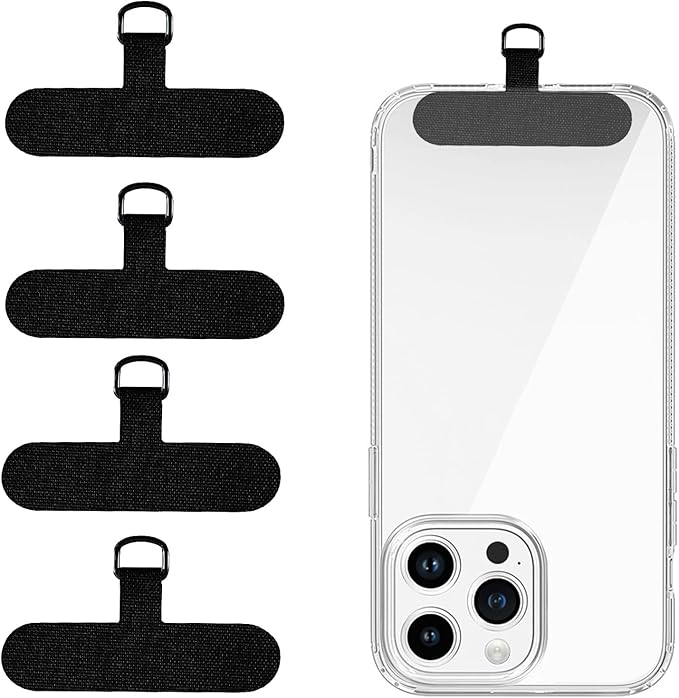 [Turkalla] スマホストラップ ストラップホルダー 4点入り【強化版タグパッチ・金属リング】 携帯ストラップホルダー スマホケースに挟む 全機種対応 充電影響なし 落下防止 紛失防止 タグパッチ4枚(ブラック)