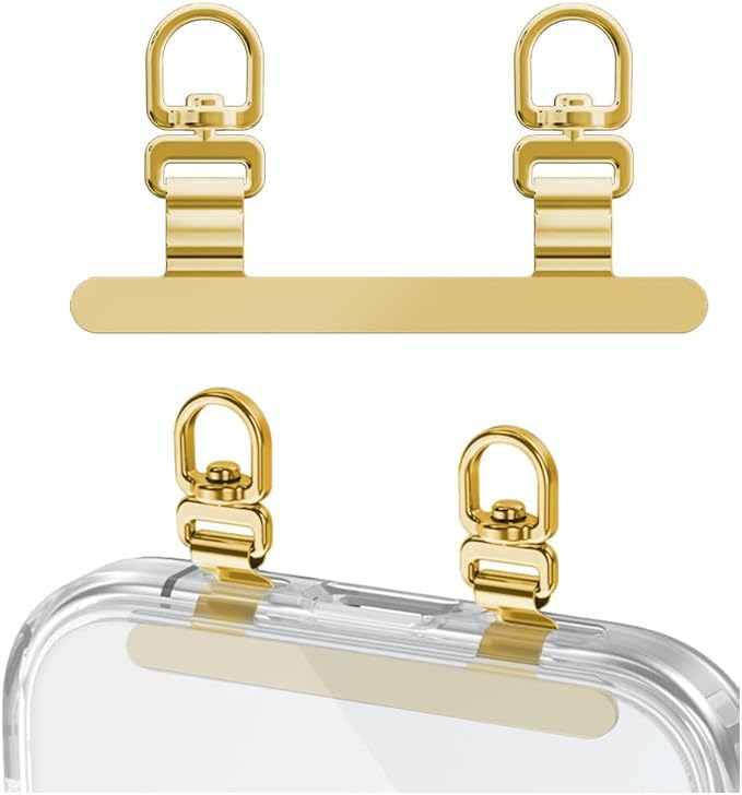 スマホストラップホルダー 【 2口タイプ ・傷防止フィルム付き・360 回転式】携帯ストラップホルダー ステンレス鋼 メッキ仕上げ 薄型 丈夫10kgまでの荷重 全機種対応 充電影響なし 落下紛失防止 (360回転-金)