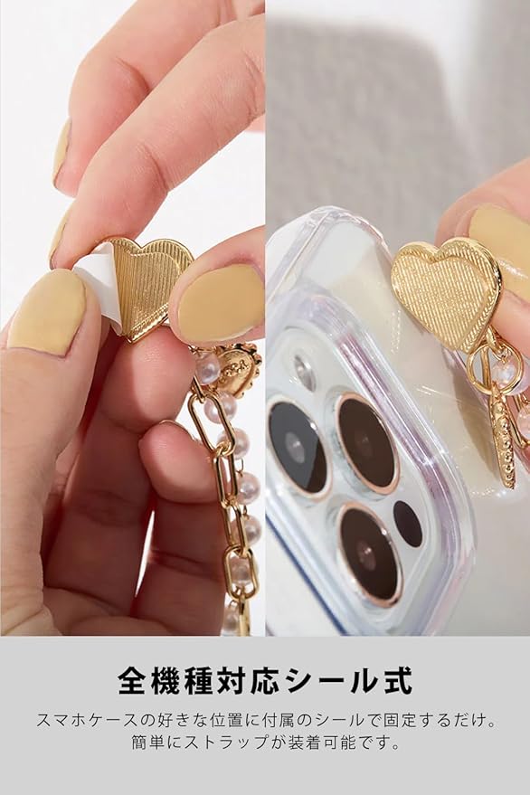 スマホストラップ ハンドストラップ パール パールストラップ キーリングハンガー パールチェーン ストラップ スマホ 落下防止 ホワイト WIZU (ウィズユー)