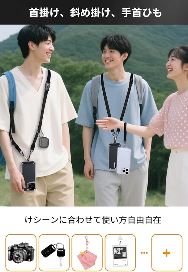 [MagStan] 【2025新改良・多機能】スマホストラップ 幅1.5cm YKKバックル使用 首掛け/斜め掛け/肩掛け/手首ひも 装着長さ45cm~75cm 瞬時の着脱で便利 長さ調節自由 ケータイストラップス 手帳型ケース対応 7Pセット付属品充実 ショルダーストラップ ネックストラップ 全機種対応 落下防止 散歩 通勤 通学 旅行 (ブラック)