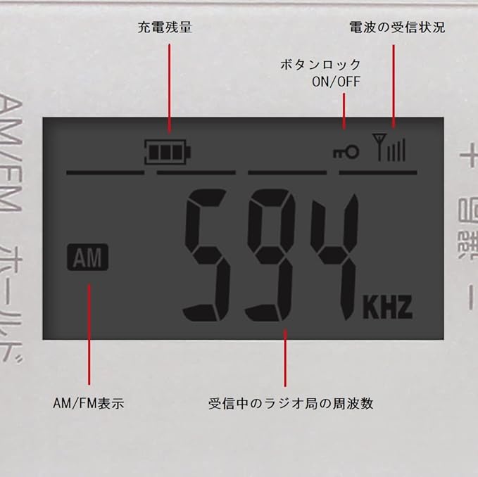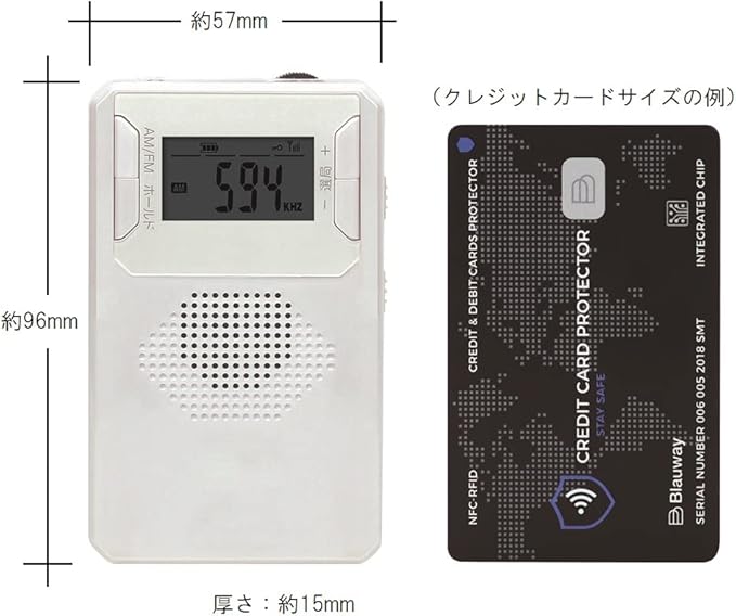 ワイドFM対応 充電式AM/FMポケットラジオ。胸ポケットにすっぽり収まります。