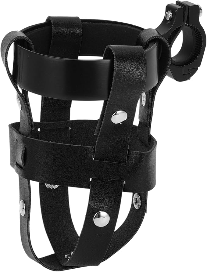 RATCHROLL アルミ合金 レザー バイク ドリンクホルダー 自転車 ボトルケージ 取り付け簡単 カップホルダー 軽量 耐久性 水筒 車椅子 カー ママチャリ スクーター 船 ゴルフカー 1個 ブラック
