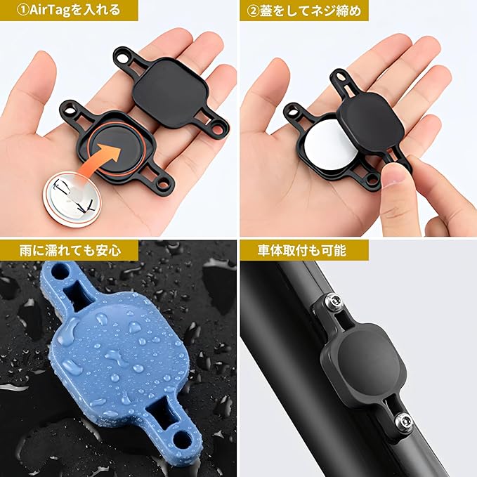 自転車 AirTag ケース 自転車用gps盗難防止 ドリンクホルダー ハンドル取付アダプター付属 盗難防止ネジ ブラック