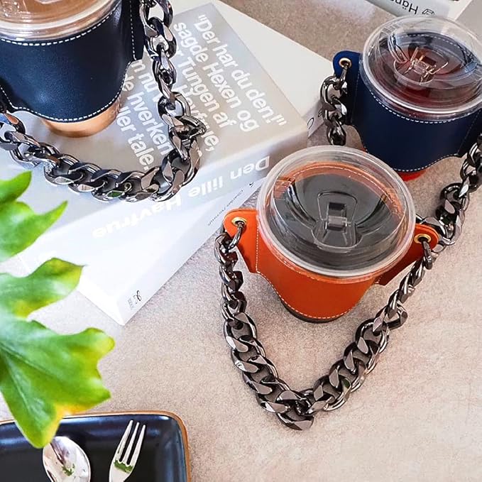 ドリンクカップホルダー カップホルダー 持ち歩き ドリンクホルダー テイクアウト カップドリンク (くすみブルー チェーン)